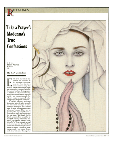 En cuanto a su imagen, bueno, puedes ver su ombligo en la manga interior, pero lo que escuchas una vez que entras en el paquete está tan cerca del arte como la música pop. «Like a Prayer» es una prueba no solo de que Madonna debe ser tomada en serio como artista, sino que la suya es una de las voces más convincentes de los años ochenta. Y si tiene problemas para aceptar eso, tal vez sea hora de un pequeño ajuste de imagen propio. >>