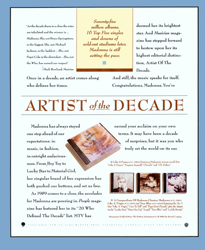 Desde que el ombligo de Madonna se abrió camino hacia la conciencia de masas, su fama ha sido más una cuestión de imagen que de arte. No importa si había alguna profundidad o resonancia detrás de esto; para muchos de sus fanáticos, la imagen sola, Madonna como astuta, juguetona, manipulando alegremente el mundo material, fue lo suficientemente resonante. Para otros, fue solo un acto, una estratagema pop fríamente calculada diseñada para vender discos.