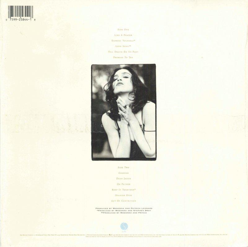 Las canciones que Madonna co-produjo con Patrick Leonard, que incluyen «Like a Prayer», son impresionantes en su amplitud y logro. «Cherish», que logra un guiño a la canción de Association del mismo título, hace referencias inteligentes de retro-rock, y «Dear Jessie» cuenta con toques de calidoscopio de Sgt. Pepper. Cuando Stephen Bray reemplaza a Leonard como coproductor, incluso una melodía groove descarada como «Express Yourself» parece inteligente y atrevida, hasta el testimonio al estilo del alma de Madonna en la introducción: «Vamos, chicas, ¿creen en el amor?»