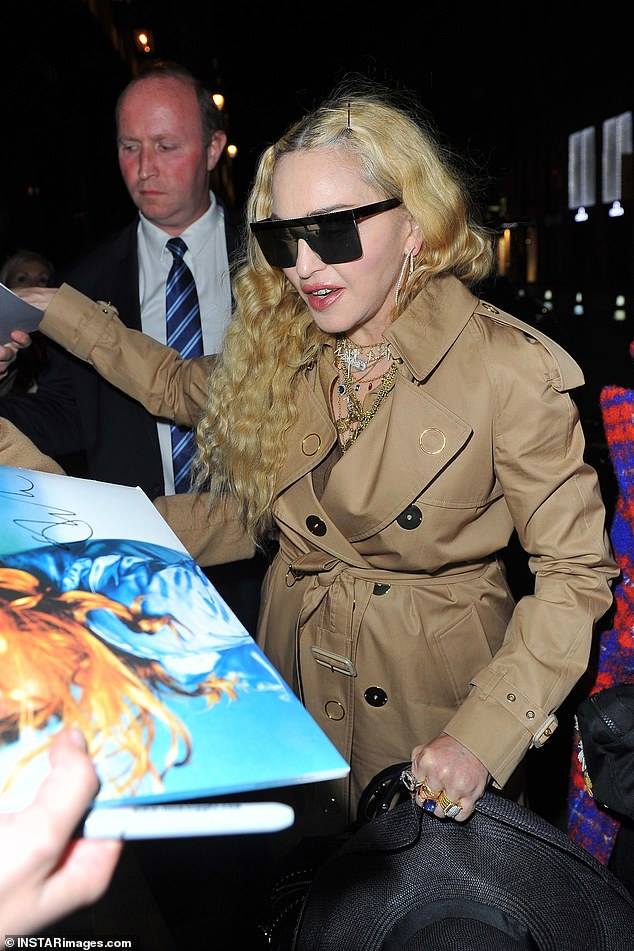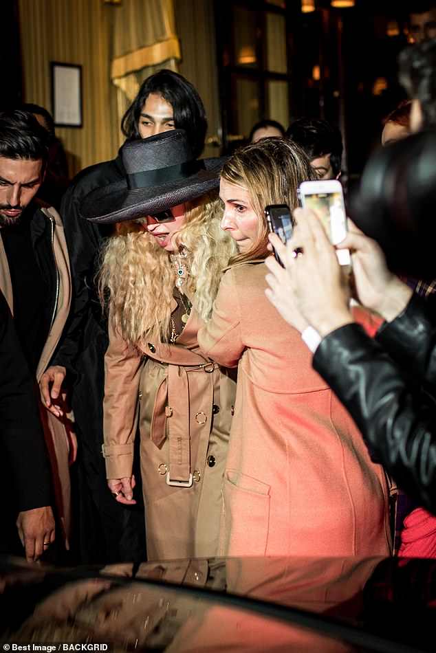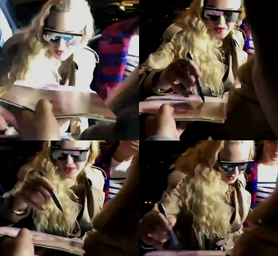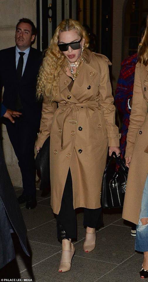 Por la noche, se la pudo ver salir del hotel “Ritz”, luciendo un impresionante sobretodo color camello de la marca “Burberry”. Madonna estuvo de buen humor y fue la delicia de los cientos de paparazzis que hacían guardia en la puerta del lujoso hotel. La cantante incluso se tomó el tiempo para saludar a los fans y firmar algunos autógrafos. Madonna y un grupo de amigos cenaron y bailaron en el exclusivo restorán y club “Matignon Paris Officiel”.