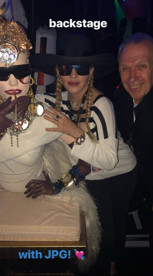 Al ingresar al show se muestra un set con varios elementos de la carrera de Gaultier como su merchandising, el famoso perfume con la imagen del marinero y por supuesto varios corsets diseñados para Madonna. Algunos hits de la cantante pueden oírse antes del show como “Holiday” y “Like a Prayer”. Durante el espectáculo, hay dos temas completos dedicados a Madonna, “Express Yourself” y “Vogue”. Madonna se mostró muy a gusto en el espectáculo y subió varias imágenes y videos a su cuenta e historias de Instagram.