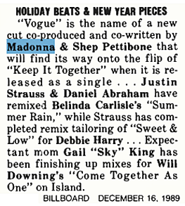 - El 16 de diciembre de 1989, la revista «Billboard» informó que Madonna había grabado una nueva canción titulada «Vogue» y que serviría como cara b del próximo single a lanzar, «Keep it Together». Como todos ya sabemos, las cosas cambiaron con «Vogue» y más tarde, en marzo de 1990, «Keep it Together» fue incluído como cara B para las ediciones europeas de «Vogue».