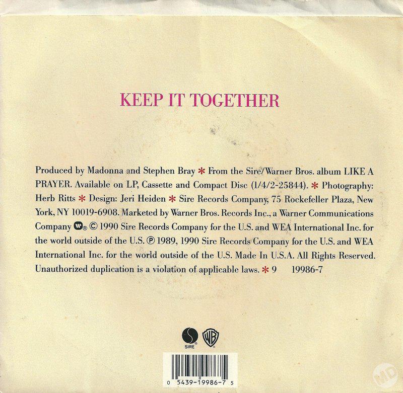 - «Keep it Together» fue el sexto y último single del disco “Like a Prayer”, lanzado el 30 de enero de 1990 por Sire Records y Warner.
