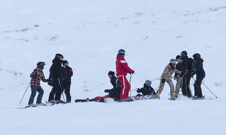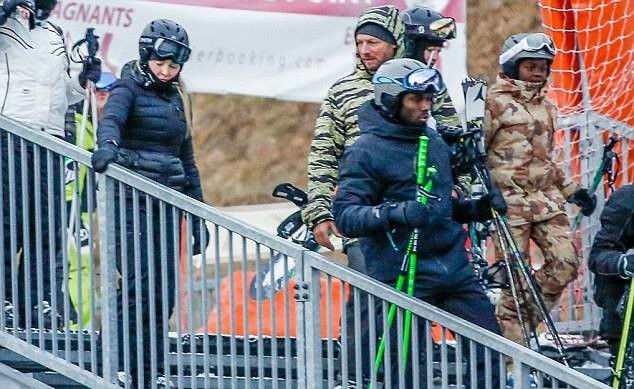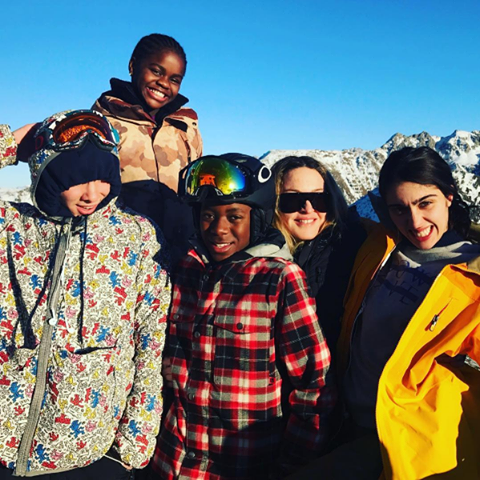 Además de ellos, se encontraban en el grupo un gran amigo de Madonna, el ilusionista David Blaine quien actuó como intermediario entre la cantante y Ritchie, durante la batalla legal por la tenencia de Rocco. En el grupo también se encontraba la joven Kim Turbull, novia de Rocco y el Aboubakar Soumahoro, aparente novio de Madonna. La cantante se mostró de buen humor posando junto a todo su grupo, practicó esquí luciendo una impresionante campera negra de la marca Moncle Grenoble y no se mostró avergonzada cuando tuvo una importante aunque inofensiva caida.