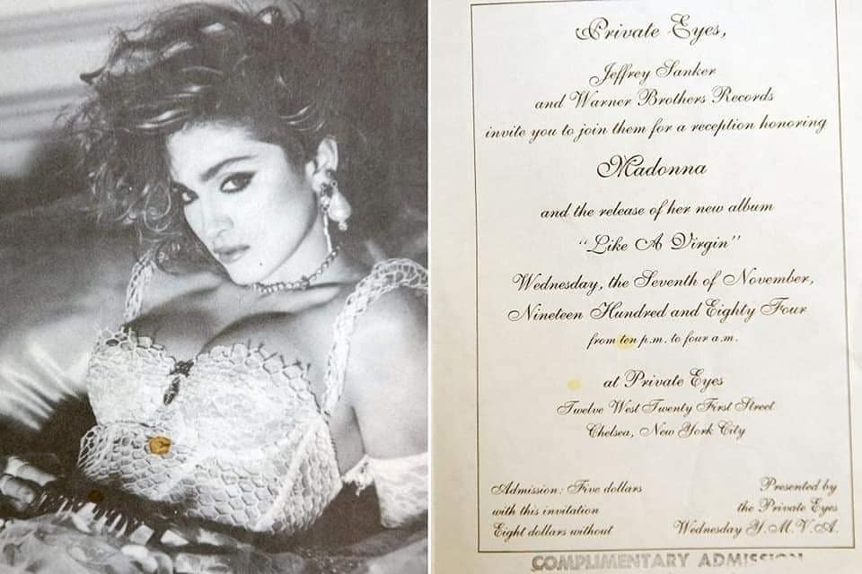 El 07 de noviembre de 1984, la Sire decide realizar una gran fiesta de lanzamiento del segundo disco de Madonna «Like a Virgin». El evento se llevó a cabo en el famoso club «Private Eyes». Al evento estuvieron invitados varias celebridades del mundo de la música y el arte como Keith Haring, Andy Warhol quien se encaró de tomar fotografías personalmente, Jean-Michel Basquiat y por supuesto el por entonces novio de Madonna, el DJ John «Jellybean» Benitez.