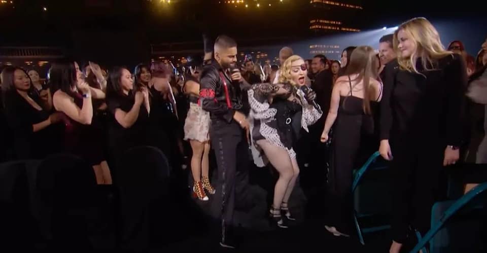 Finalizada la actuación Madonna se despidió de Maluma en backstage y se fue del lugar rápidamente. Se mostró de buen humor y se tomó fotografías con otras personalidades como Dave Rocco de Universal Music o el grupo coreano BTS. Luego pasó unos minutos por la afterparty, a cargo del DJ Diplo en el «Encore Beach Club».