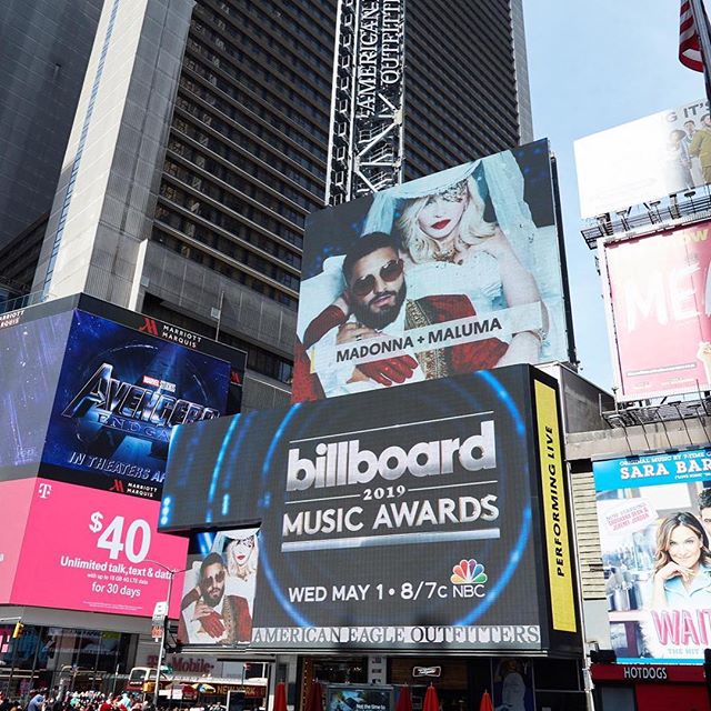 El evento también tuvo mucha publicidad y presencia en los medios de comunicación y en las calles. El día del show, Madonna no estuvo presente en la alfombra roja ni entre el público a pesar de tener un lugar reservado especialmente para ella. Por el contrario, Maluma si fue visto en la red carpet y luego disfrutando del inicio del espectáculo entre el público minutos antes de su presentación. Los «Billboard Music Awards» 2019 se llevaron a cabo el miércoles 01 de Mayo en el «MGM Grand Garden Arena» de la ciudad de Las Vegas. Por segunda vez consecutiva estuvo conducido por Kelly Clarkson y se transmitió en vivo por la cadena NBC llegando a más de 8 millones de televidentes. Entre las actuaciones destacadas se contaron con Taylor Swift y Brendon Urie, quienes abrieron el show, Halsey, Ciara, Jonas Brothers, Khalid, Ariana Grande, BTS, Panic at the Disco, Mariah Carey, quien recibió el «Icon Award» y Paula Abdul quien se encargó del cierre del show.