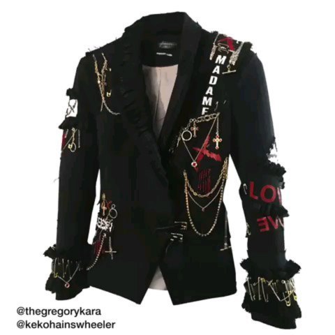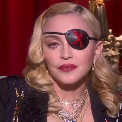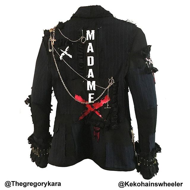 Madonna lucía su parche en el ojo de cuero negro con una “X” roja diseñado por el artista Gregory Kara, un saco hecho a medida y especialmente para el show a cargo de Keko Hainswheeler. El saco azul oscuro presentaba incrustaciones en cristales de Swarosky, cadenas y accesorios de oro como así también parches y aplicaciones con las leyendas “Madonna” y “Madame X”.