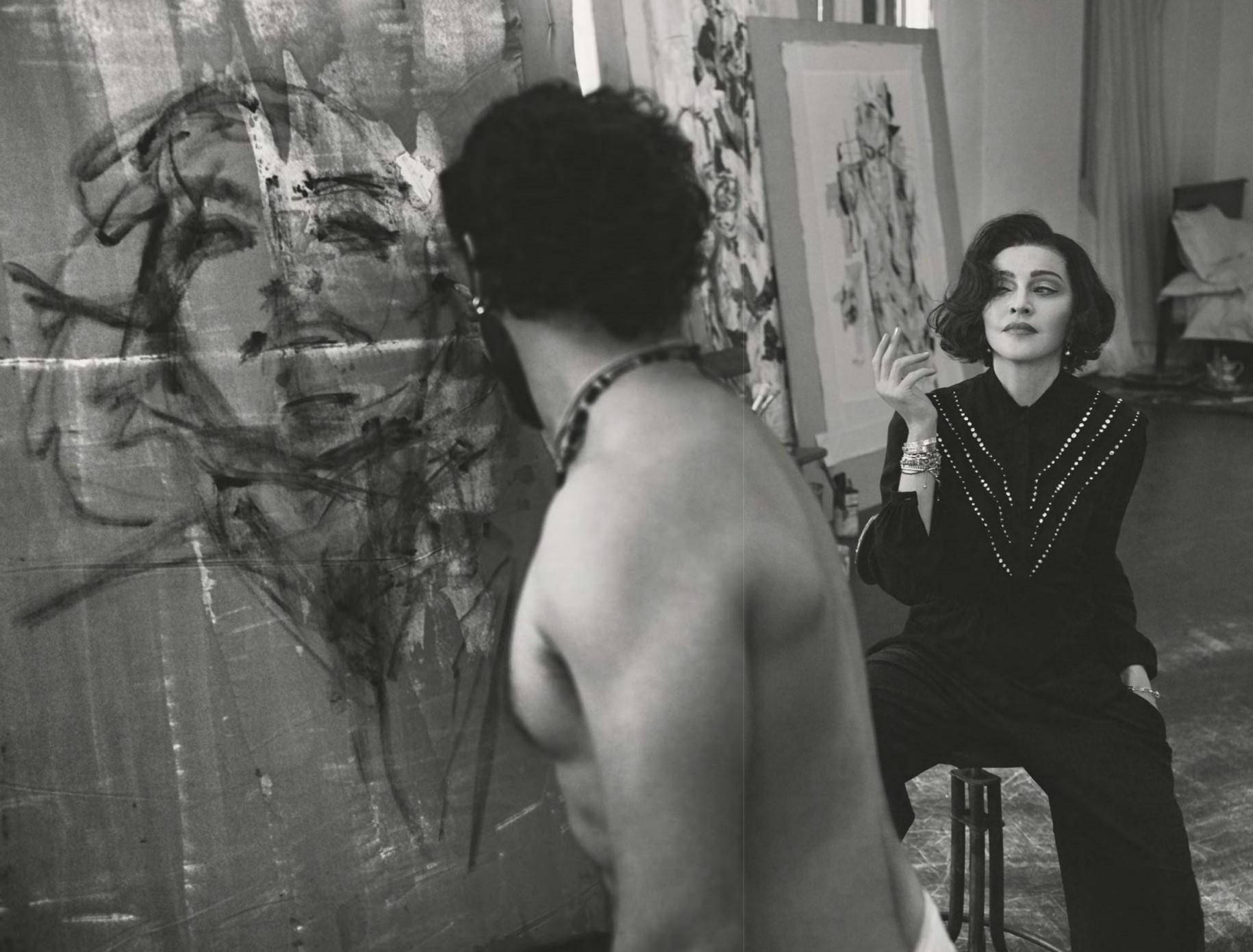 En la realización de la producción de fotos, Madonna se encuentra acompañada por el artista plástico italiano Tony Cassanelli, quien realizó en el momento un gran retrato de la estrella el que luego sería colocado en su departamento de Lisboa. A fines de mayo, Madonna compartiría un video en Instagram en donde mostraba un poco de su intimidad en la capital portuguesa y hacía referencia al retrato diciendo: «Madame X disfruta de un inusual día libre en la soleada Lisboa mientras Mercy toca Mozart. Mi retrato pintado por Tony Casanelli para British Vogue».
