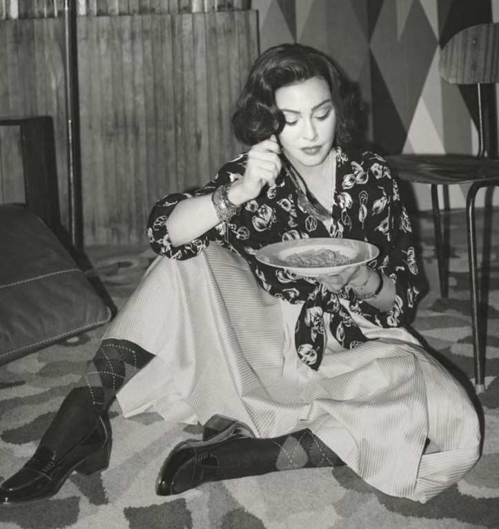 Madonna lució prendas de primeras marcas para esta producción de fotos; como por ejemplo una blusa de seda marrón con estampado de flores y mangas abullonadas de «Louis Vuitton» acompañada de una pollera plisada de satén de la marca «Fendi». Para la portada, se mostró con un vestido de jersey negro bordado con cristales de la última colección de Michael Kors.