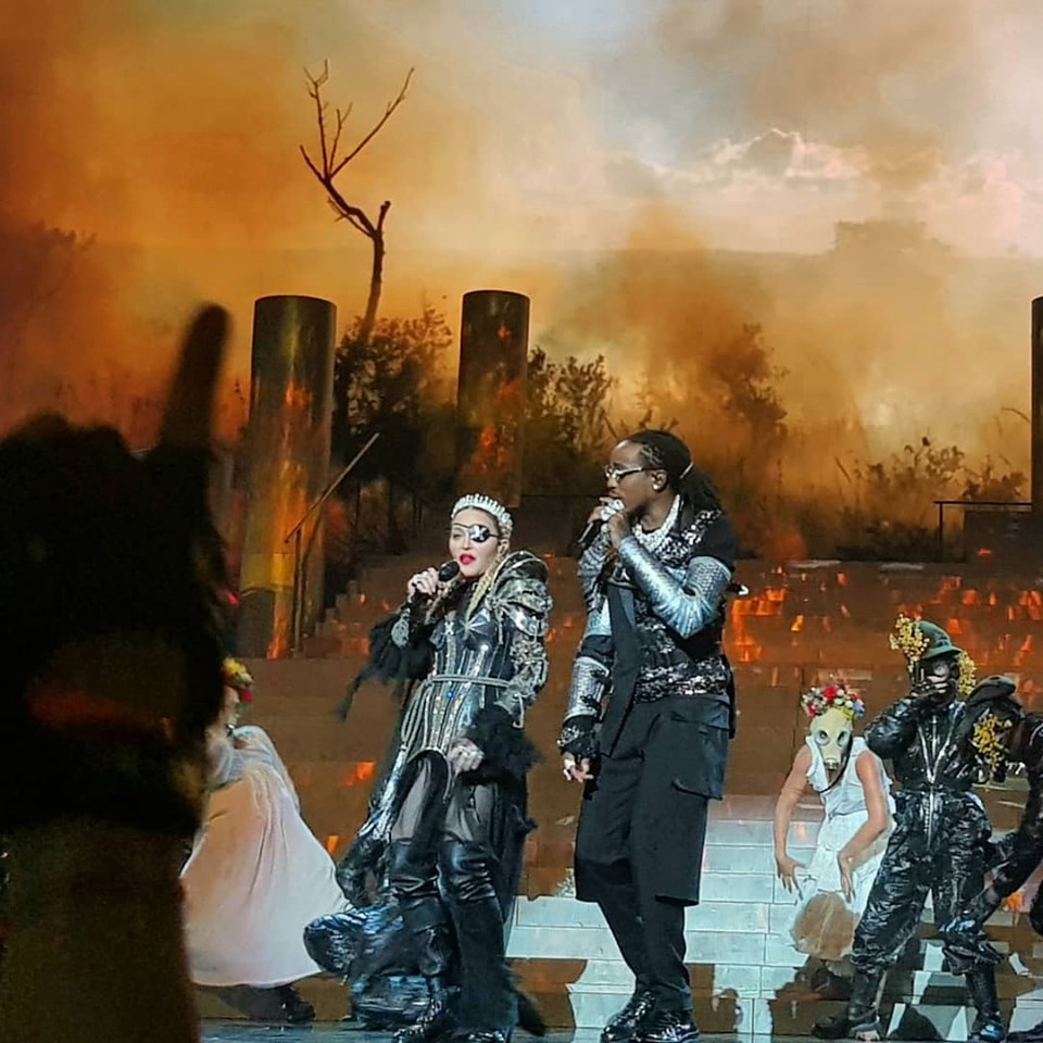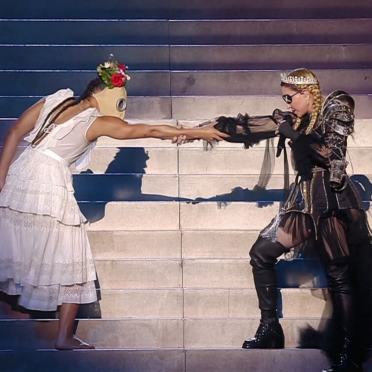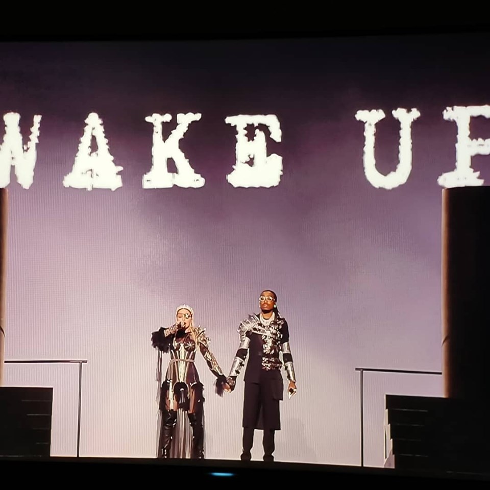 Madonna luce ahora un atuendo inspirado en Juana de Arco y diseñado por Jean-Paul Gaultier para comenzar a interpretar un intermedio con música clásica de fondo mientras ella interactúa con las bailarinas dice: “Ellos son tan inocentes que no se dan cuenta que nosotros sabemos de sus crímines. Nosotros sabemos que aún no estamos preparados para actuar. La tormenta no está en el aire. Está dentro nuestro. Quiero hablarles del amor y la soledad. Me asusta. Pueden escuchar afuera el viento que está comenzando a soplar”. Al finalizar, comienza la introducción de «Future» el nuevo single de su próximo disco «Madame X». Se unen al escenario bailarines masculinos, también con máscaras de gas y finalmente el rapero Quavo del grupo «Migos» que participó de la canción original, quien se encontraba en una plataforma al costado del escenario principal. Casi al finalizar, dos bailarines abrazados dan la espalda al público y se puede ver en sus trajes las banderas de Israel y Palestina juntas. La actuación que duró aproximadamente 9 minutos, termina con Madonna y Quavo cayendo dramáticamente de espaldas desde la parte más alta de la escalera mientras en las pantallas gigantes del fondo se lee «Wake up» («despierten»).