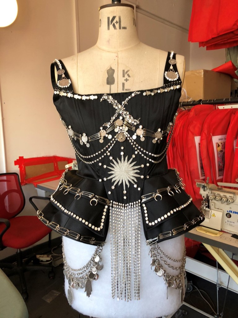Debajo de la túnica de Findikoglu, Madonna lució un diseño de Jean-Paul Gaultier, también inspirado en Juana de Arco y muy similar al que habría usado también en la gala del MET en mayo de 2018. Gaultier dijo que se inspiró en Juana de Arco porque es una «guerrera y una ganadora». Consistía en un corset armado con portaligas metalizado y todo el hombre y brazo izquierdo con apliques tipo armadura, debajo una túnica de tul negro y botas de cuero negro hasta las rodillas. El parche que utilizó esta vez, como todos los anteriores fueron obra de Gregory Kara.