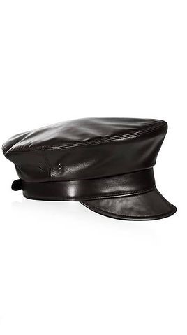 - Gorra de cuero negro «Night Porter» del diseñador Eric Javits.
