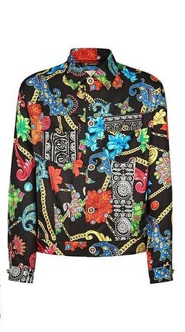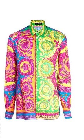 - Camisa en seda estampada multicolor con diseños barrocos de la última colección primavera-verano 2019 de «Versace».