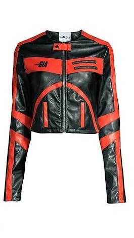 - Chaqueta de cuero bicolor negra y rojo de la marca I.AM.GIA Octavia.