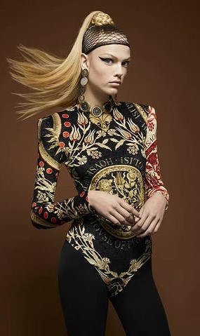 - Body negro con estampado en dorado y rojo de la colección «Ready to Wear» primavera/verano 2019 del diseñador Fausto Puglisi.