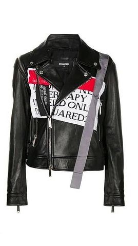 - Chaqueta de cuero negro con aplicaciones y cremallera cruzada de la colección primavera-verano 2019 de la firma DSquare2.
