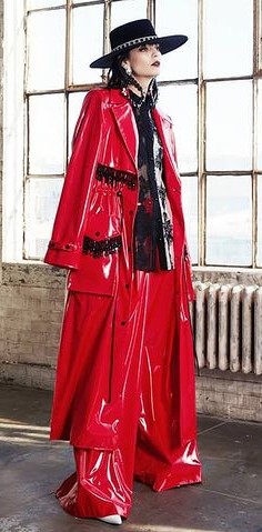 - Pantalones anches de vinilo rojo modelo «Red Salomé» de la colección otoño-invierno 2019 de Victoria Hayes.