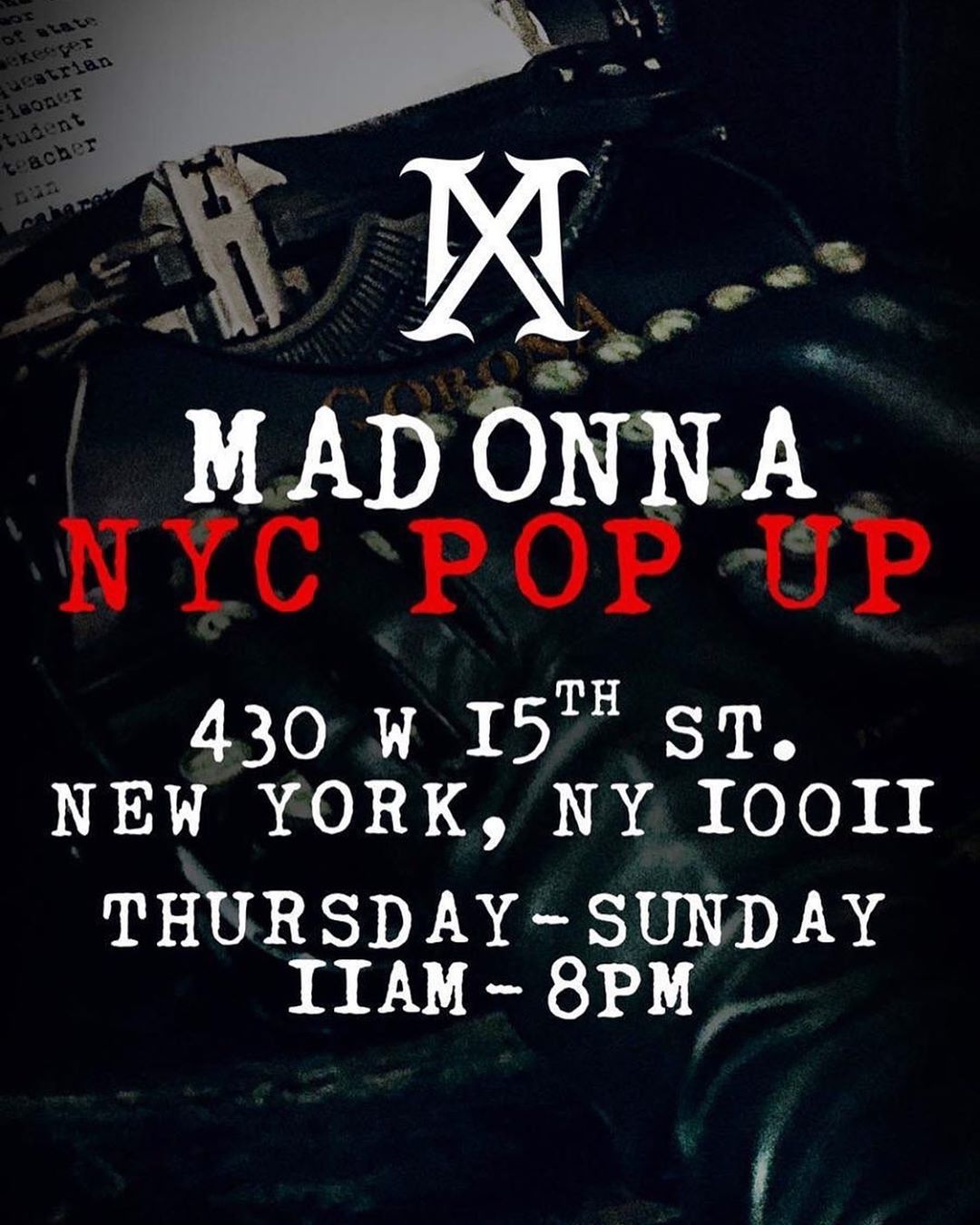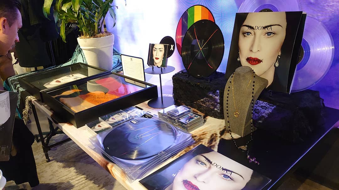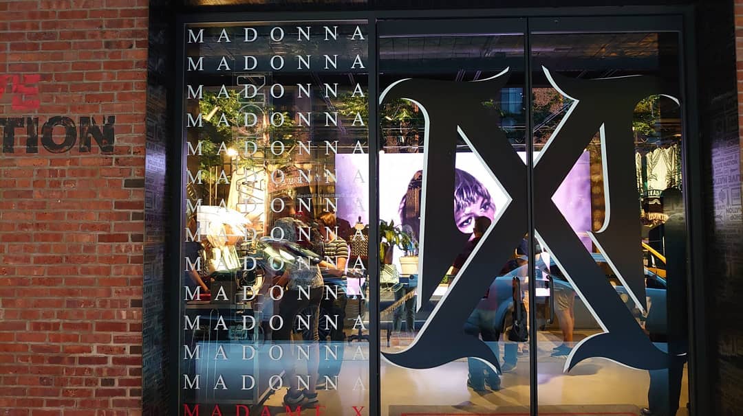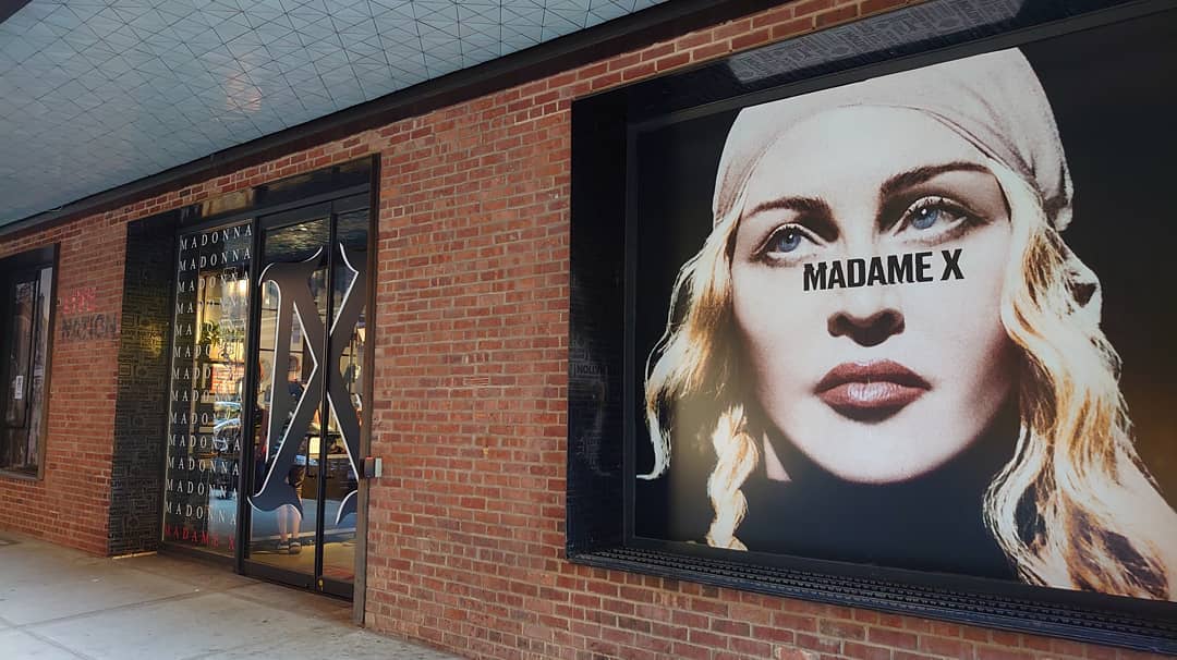 La «pop-up» store, esta ubicada en el N°430 de la calle 15 Oeste en Manhattan y permanecerá abierta desde el jueves 20 al domingo 23 de 11:00 am a 08:00 pm. En la misma se pueden encontrar todos los objetos de música y merchandising correspondientes al disco «Madame X» como así también algunos otros ítems que forman parte del catálogo de la tienda oficial de Madonna. Muchos especulan que la tienda sirvió como excusa para vender el merchandising sobrante del 30 aniversario de «Like a Prayer» porque al parecer hay mucho de eso. En el «Madame X Pop Up Store» podemos encontrar las ediciones físicas de los CD, casettes y vinilos de «Madame X», como así también mantas, almohadones, camisetas, láminas y una seria de sombreros personalizados en edición limitada con la frase «I Rise» y «Crave» realizadas por Mae Couture. Muchos se quejaron porque la edición deluxe doble CD de «Madame X» no está disponible como tampoco lo están los productos especiales como las camisetas del «NYC Pride» (evento en el que Madonna se presentará el 30 de junio) y que tampoco se encuentran ya en internet.
