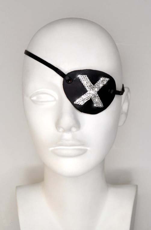 - Parche de ojo en látex negro con «X» brillante plateada de Gregory Kara.