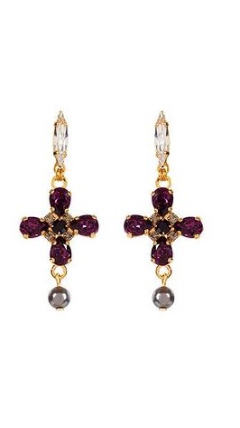 - Pendientes cruz con diamantes y piedras púrpuras y grises de Vicki Sarge.