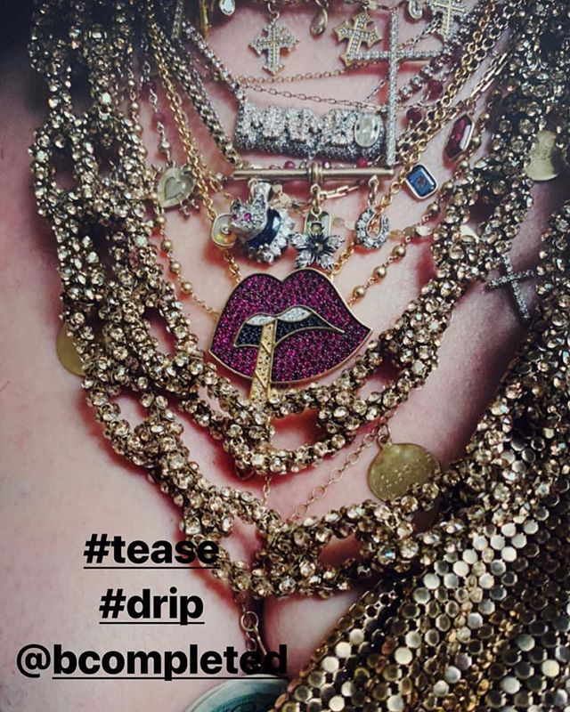 - Collar con dije de cristales «Smoking Lips» de Lynn Ban.