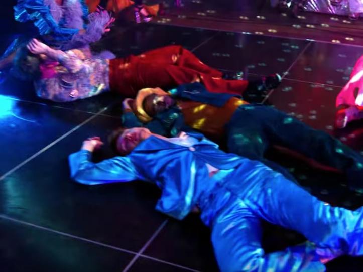 Luego se ven escenas que suceden minutos antes del ataque. Madonna interpreta otro personaje, esta vez con una peluca rubia se muestra alegre y rodeada de gente bailando al estilo disco. Todos ríen, se divierten y pasan un buen momento. Madonna llega a la disco en un auto luciendo un traje dorado, un sombrero ala ancha y una boa de plumas negra. Saluda a la gente, se la ve feliz y despreocupada.