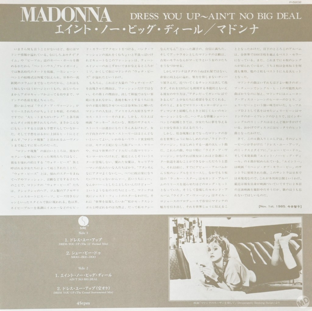 - 10-12-1985 – P-5202 – «Dress you up / Ain’t No Big Deal Club Mix»