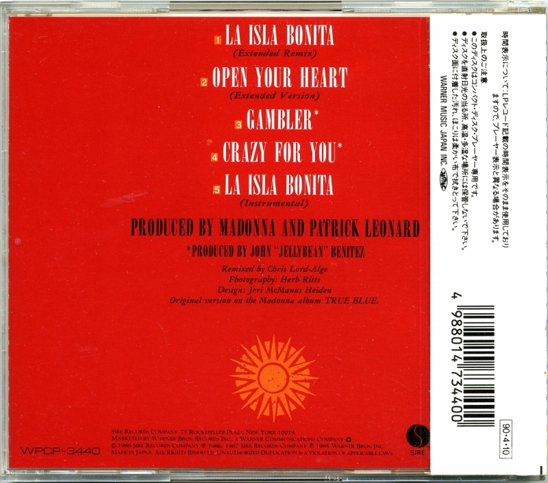 - WPCP-3440 – «La Isla Bonita Super Mix» (1990 re-release)