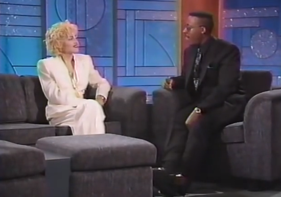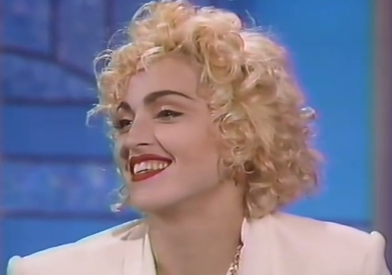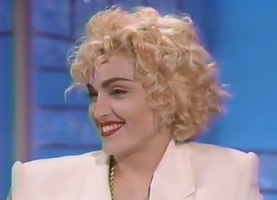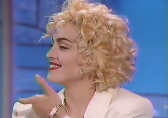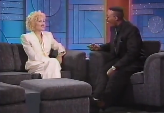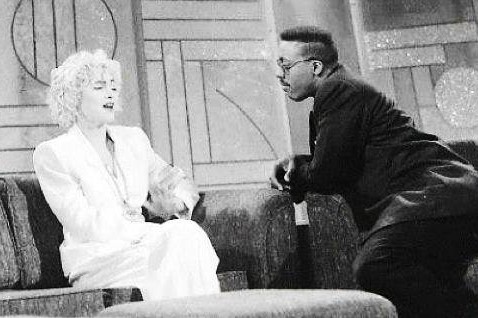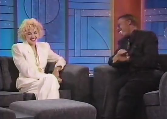 El 01 de mayo de 1990, Madonna realiza su segunda aparición en un talk show luego de «The Tonight Show with Johny Carson» en 1987. En esta ocasión lo hizo en «The Arsenio Hall Show», programa emitido por la Paramount Domestic Television y conducido por el comediante Arsenio Hall. La gente comenzó a hacer fila afuera de los estudios Paramount en Los Angeles desde la madrugada del día de la grabación hasta las 15 pm. momento en que se abrieron las puertas del estudio. Madonna participó de muy buena gana en el programa bromeando y haciendo chistes con el conductor. Incluso le jugó una broma al entrar antes de tiempo mientras Hall estaba haciendo su monólogo de presentación. Madonna habló sobre su gira «The Blond Ambition Tour», su disco «I’m Breathless» y el film «Dick Tracy», además de su relación con Warren Beatty e hizo poner un poco incómodo a Hall al hacer algunos comentarios irónicos sobre Paula Abdul, «sólo quiero saber que se siente ser dejado por John Stamos». Madonna además se burló del peinado de Hall y sugirió que él y Eddie Murphy podrían ser amantes a lo que el conductor retrucó criticando las joyas de Madonna y bromeando sobre su relación con la comediante Sandra Bernhard. Madonna lució un traje blanco de saco y pantalón, su cabello rizado y rubio y una gran cadena de oro con el signo «dólar». El traje es muy parecido (sino el mismo) que usó para la entrevista con Molly Meldrum a fines de 1989.