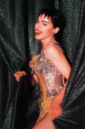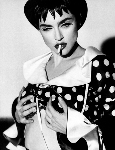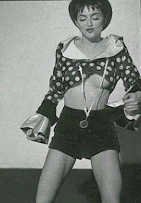 Madonna lucía el cabello muy corto, lacio y teñido de negro, un cambio rotundo con respecto a la imagen de los bucles rubios que nos traía acostumbrado luego de su personaje Breathless Mahoney en el film “Dick Tracy”. Para el vestuario (lo poco que se usó, inspirado en el Cabaret Weinmar), se escogieron prendas vintage, un body negro con encaje, una túnica de tul, un mini short de terciopelo y la famosa chaqueta estilo polka a lunares que luego usaría para interpreter “Holiday” durante “The Blond Ambition Tour”.