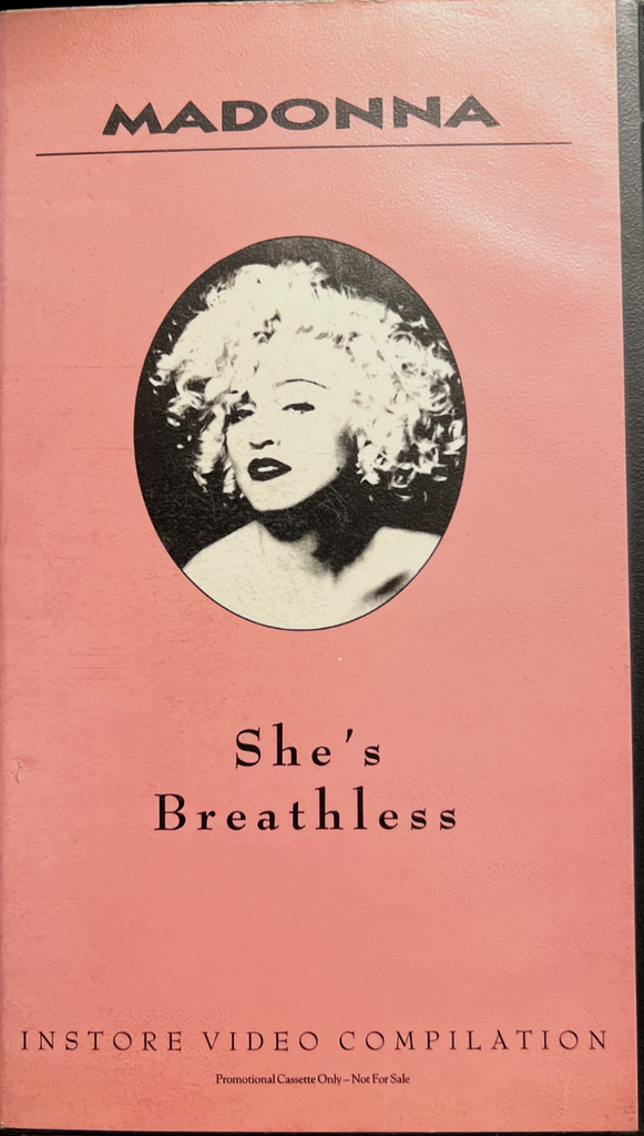 En julio de 1990 en UK se lanzó un material promocional exclusivo al comenzar el segmento europeo de la gira «The Blond Ambition Tour». Al igual que sucedió con la compilación «It’s That Girl» (1987), con la gira «The Who’s That Girl World Tour», la WEA Records UK, editó un casette y un VHS promocional con una recopilación de los hits de Madonna desde sus inicios hasta 1990 y lo tituló curiosamente «She’s Breahtless» para vincularlo directamente con el disco recién salido a la venta, «I’m Breathless». Estos rarísimos productos se lanzaron en un edición limitada en muy pocos números y fueron distribuidas a las disquerías y tiendas de música.