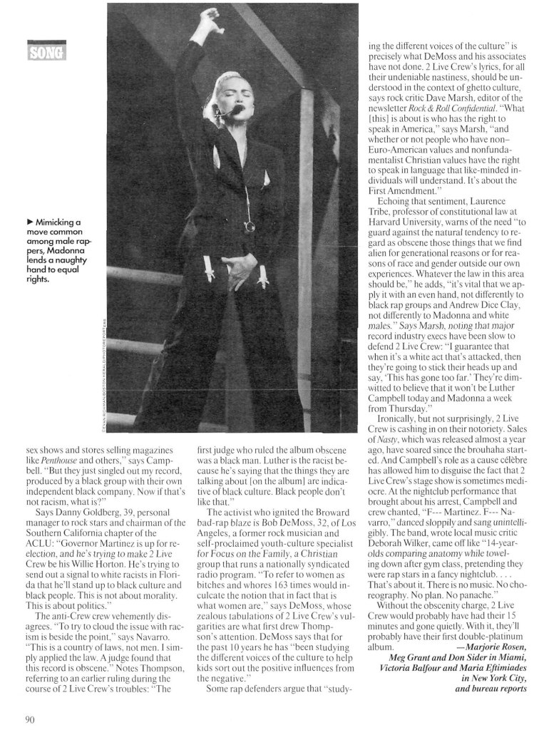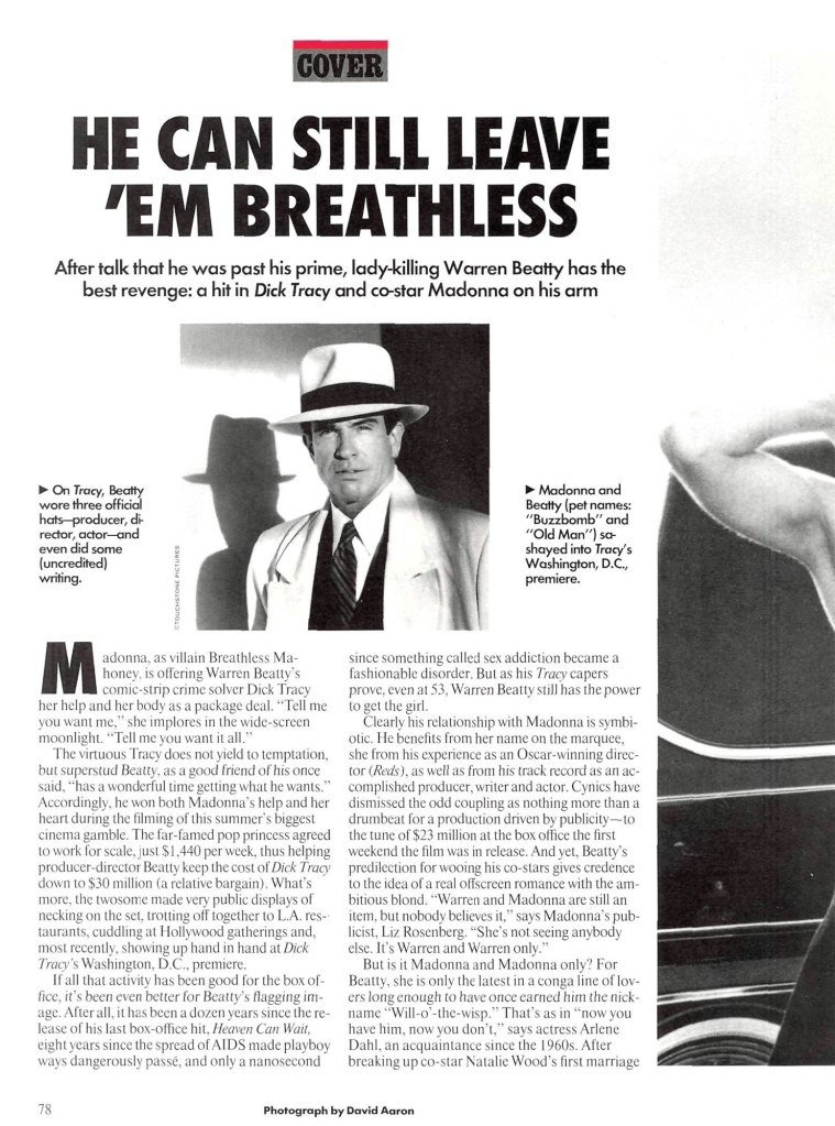 La edición de julio de 1990 de la revista americana «People» se ilustró con Madonna y Warren Beatty en la portada con una fotografía de Patrick Demarchelier para la promoción del film «Dick Tracy». La nota estaba divida en dos partes, la primera dedicada al film «Dick Tracy» y al actor Warren Beatty, haciendo una breve revisión sobre su vida y al romance con Madonna, titulada «Él puede dejarlos sin aliento». Y la segunda parte, «Rock and Roll Atrevido», estaba centrada en Madonna y en su gira «The Blond Ambition Tour».