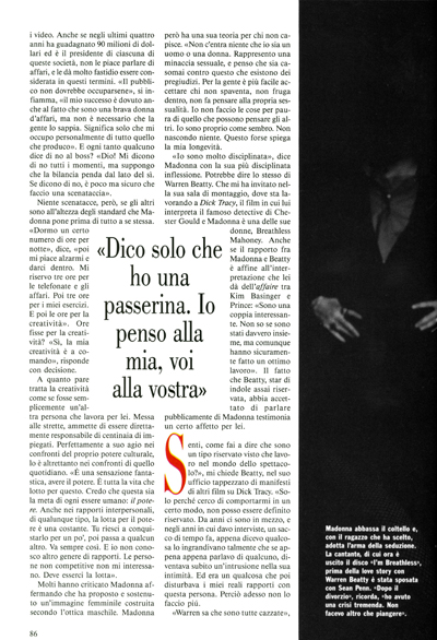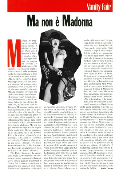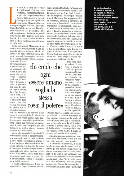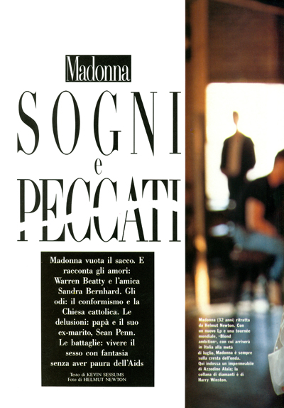 Para conmemorar la visita de Madonna a Italia con su gira «The Blond Ambition Tour», se lanzó la edición de julio de «Vanity Fair» Italia, con el mismo portfolio de Helmut Newton realizado a principios de ese año. La nota de 16 páginas se tituló: «Sogni e Pecatti» y contenía prácticamente las mismas fotografías que la edición americana.