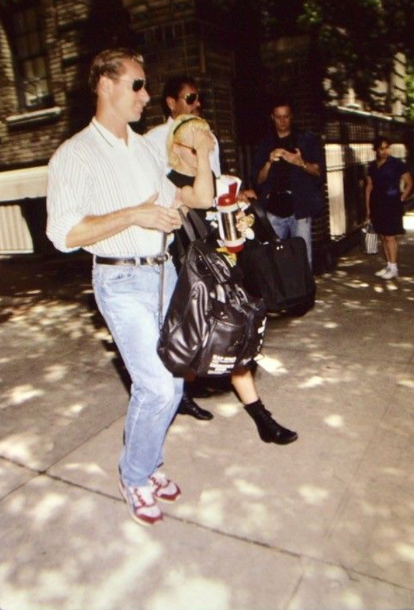 Madonna el 21 de junio saliendo de su apartamento en el N°41 de la calle Central Park West en el Upper West Side de Manhattan, acompañada de su publicista Liz Rosemberg y su guardaespaldas Clive Tave. Curiosamente, estaba usando el jean intervenido que lució durante su presentación en el evento «Don’t Bungle the Jungle» junto a Sandra Bernhard en 1989.