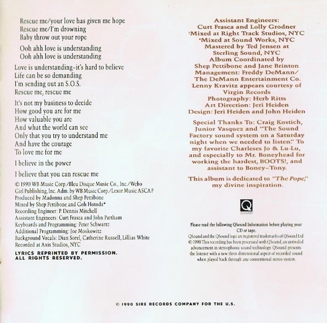 - “Rescue Me” (Madonna; Shep Pettibone) – 05:32