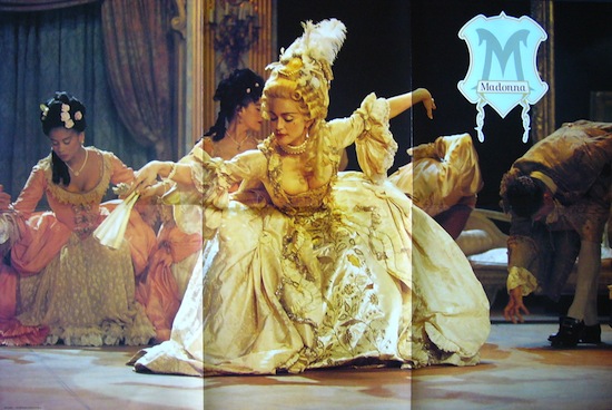 Poster a color de 24″ x 36″ con una imagen tomada de la mítica interpretación de «Vogue» durante los MTV Video Music Awars con Madonna y su grupo ataviados al estilo Maria Antonieta.