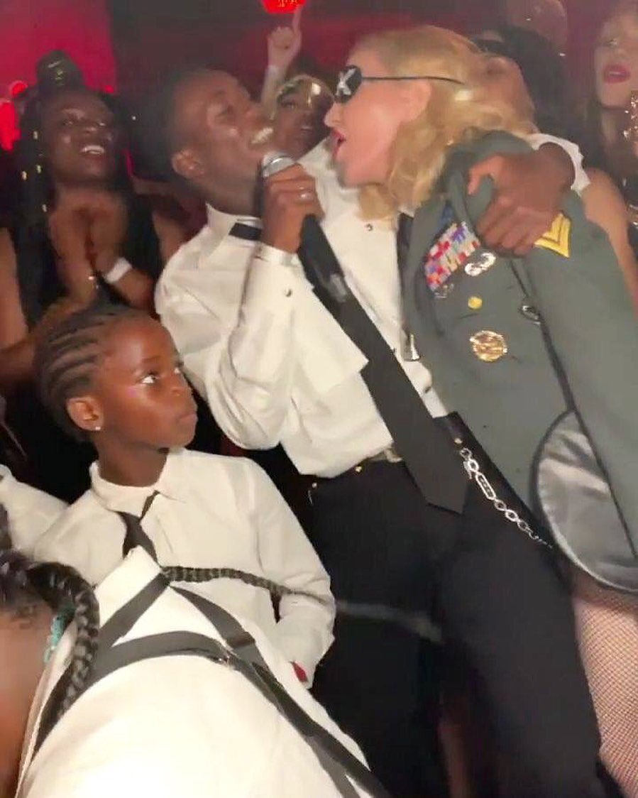Para la fiesta llevada a cabo en su casa de «The Hamptons», Madonna lució un vestido de seda estampada con colores estridentes y mangas largas de la colección otoño-invierno 2019 de la marca «Versace». Todos sus hijos, además estuvieron vestidos con el mismo sello.