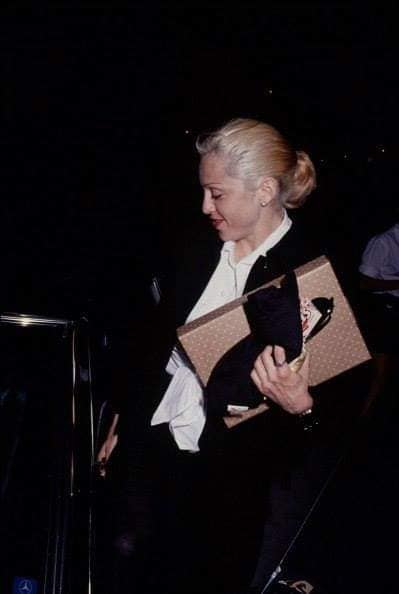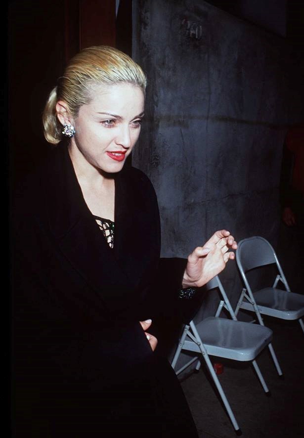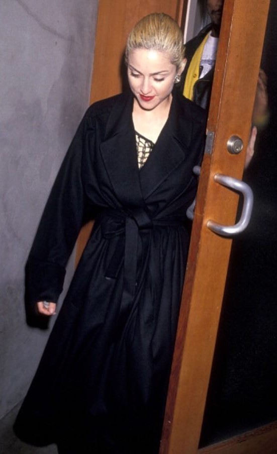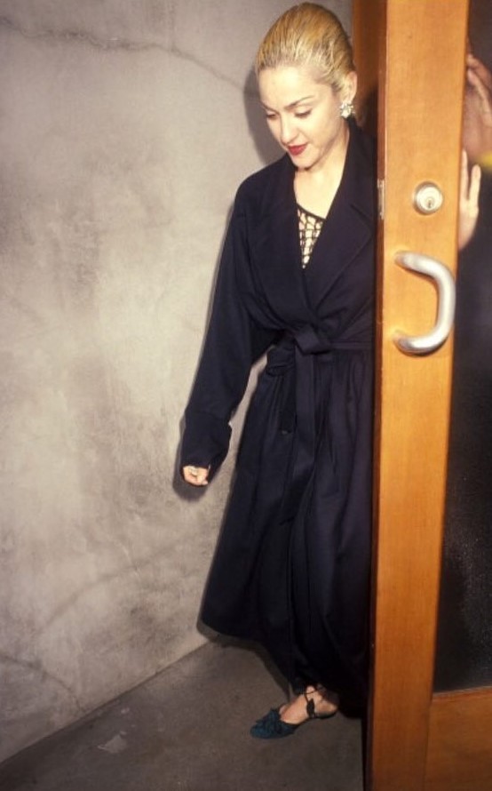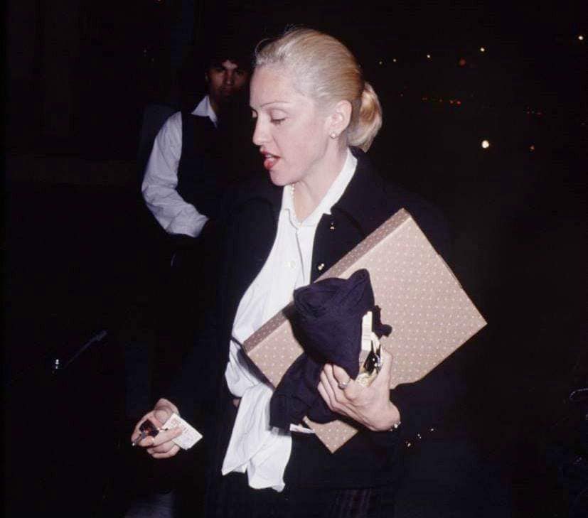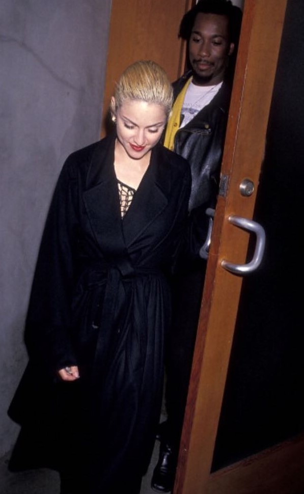 El 12 de marzo de 1991, Madonna fue vista saliendo del restoran «Muse» en Los Angeles con Carlton Wilborn, uno de sus bailarines preferidos de su gira «The Blond Ambition Tour». Lo llamativo en estas fotos es el peinado de Madonna, que luce el cabello recogido en un rodete en la nuca y un maquillaje muy suave, lo que nos remontaría al personaje que cinco años más tarde representaría en la pantalla grande Eva Perón.