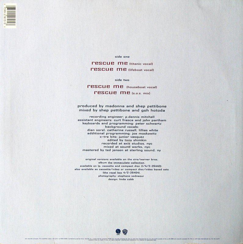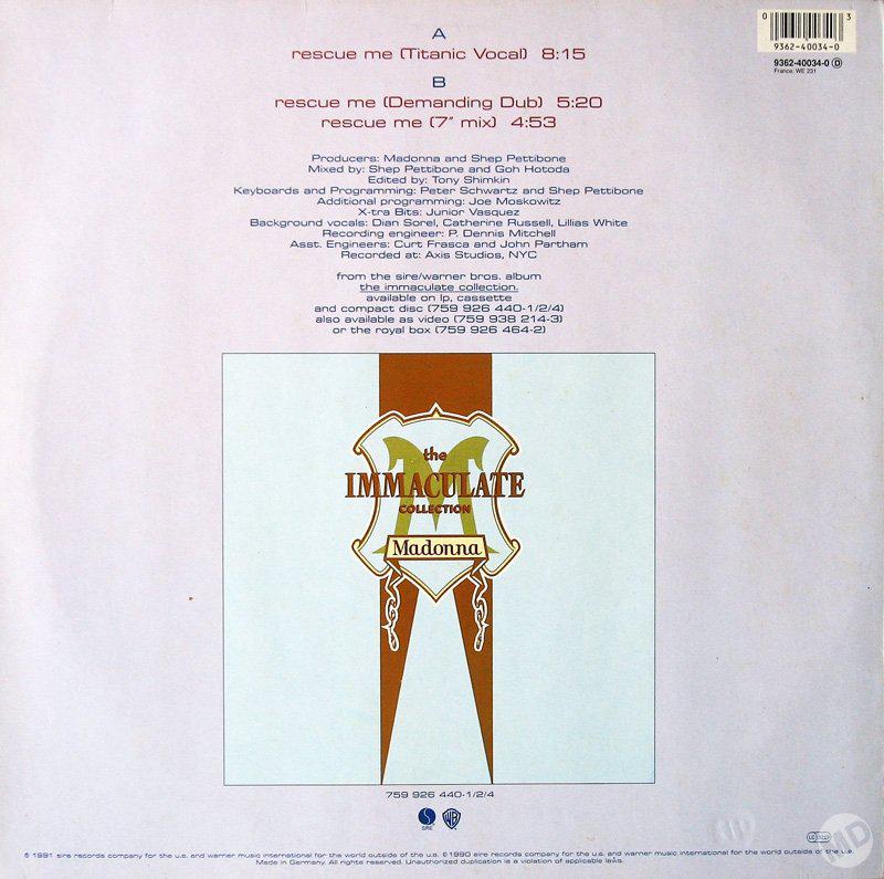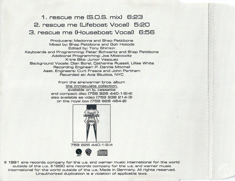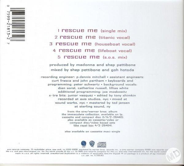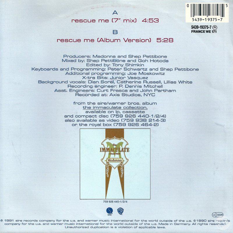 - Inicialmente y después del éxito de «Justify my Love» la Sire no tenía intenciones de lanzar un nuevo single para «The Immaculate Collection», sin embargo, «Rescue Me» comenzó a tener una gran notoriedad y una intensa rotación en las radios, de manera que se decidió entonces publicarlo como single.