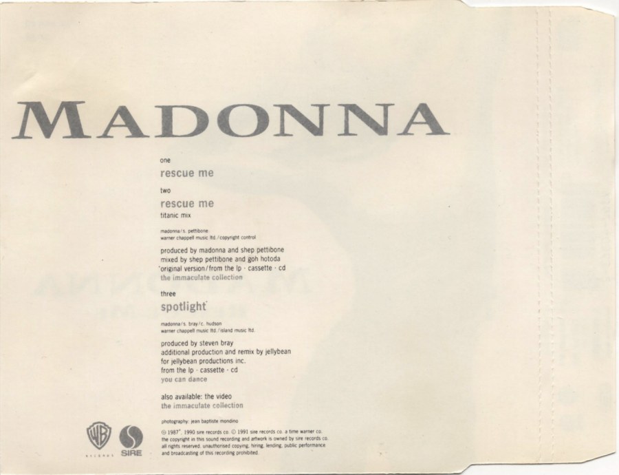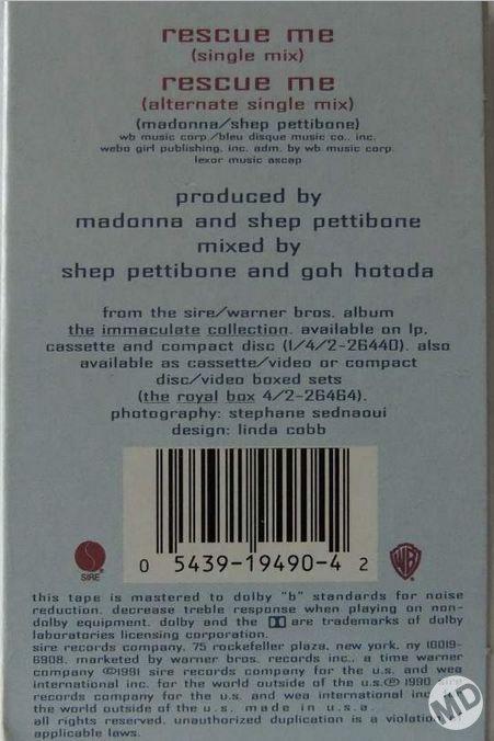 - «Rescue Me» es la segunda canción nueva y original que formó parte de la gran primera recopilación de éxitos de Madonna, «The Immaculate Collection».