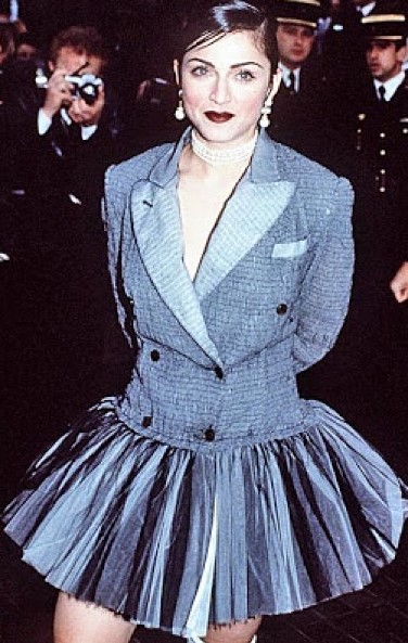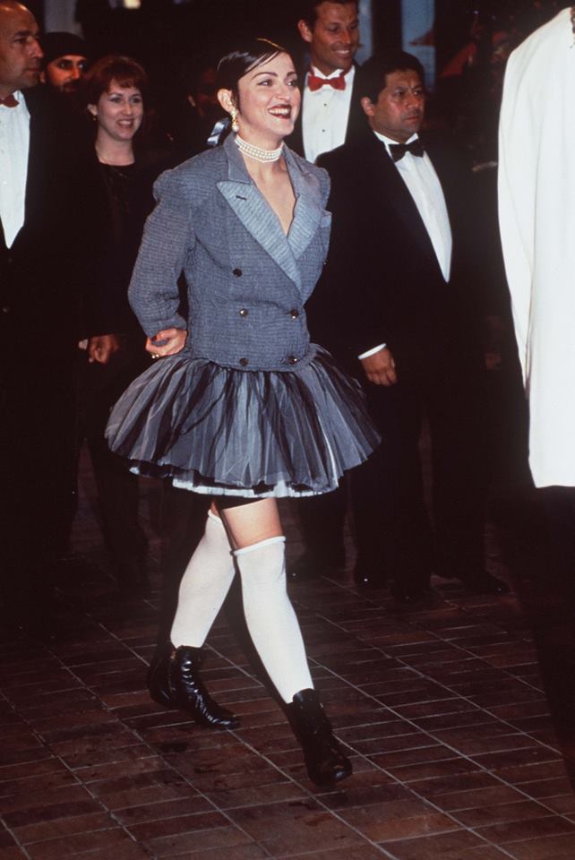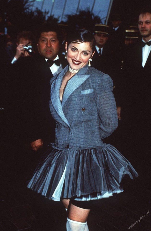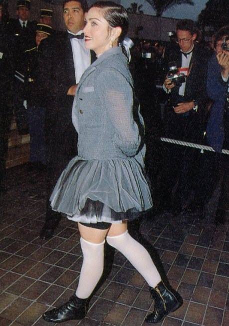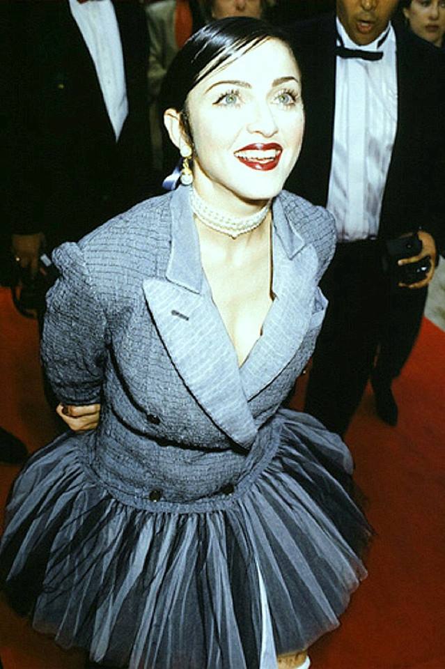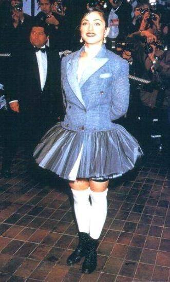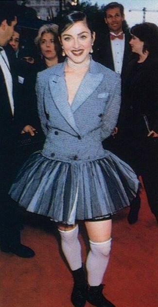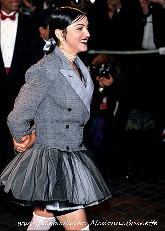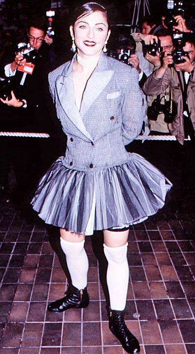 Madonna lució para esta oportunidad, tal vez uno de los estilos más extraños. Vestida completamente por Jean-Paul Gaultier, la cantante usó un saco cruzado gris con amplias sopalas y hombreras, debajo una falta de tul gris y negra estilo tutú, botas cortas y medias largas blancas hasta la rodilla. El peinado era recogido con un gran moño en la nuca.