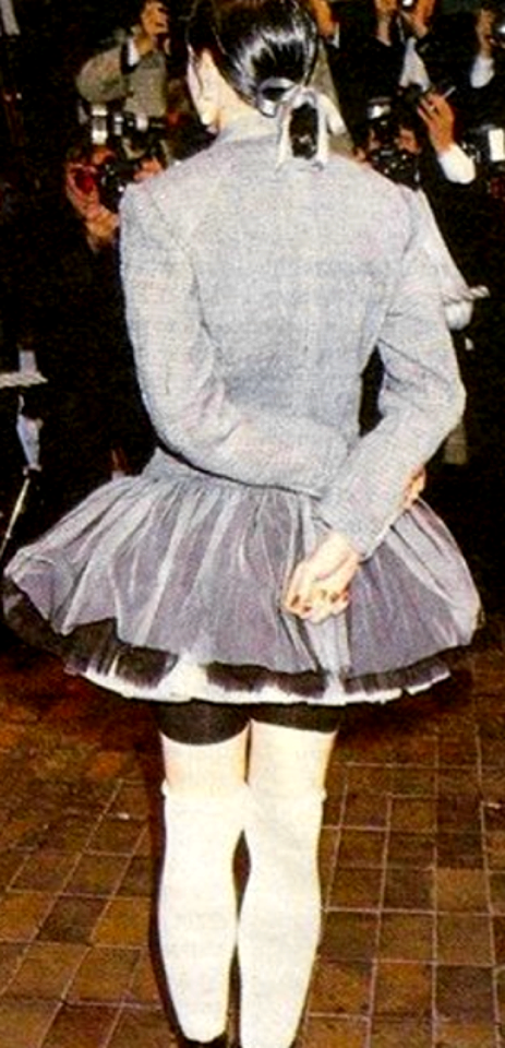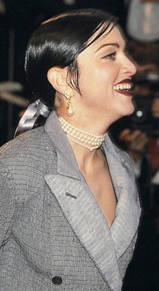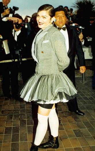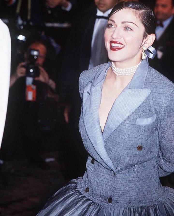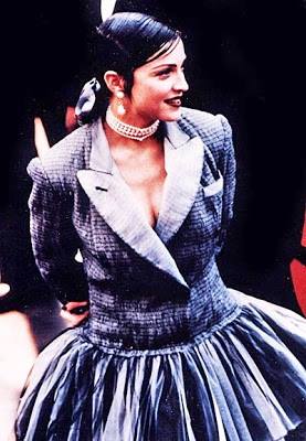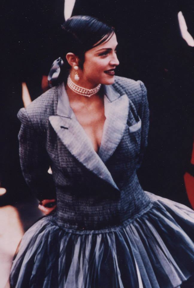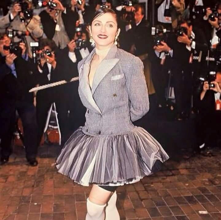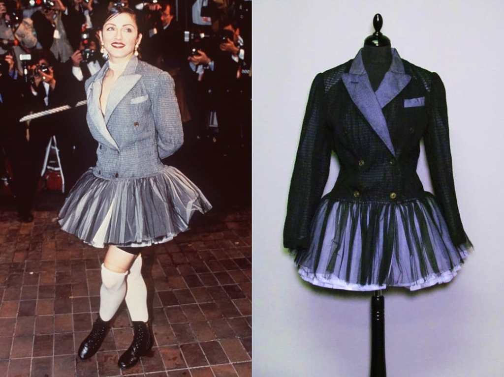 Madonna lució para esta oportunidad, tal vez uno de los estilos más extraños. Vestida completamente por Jean-Paul Gaultier, la cantante usó un saco cruzado gris con amplias sopalas y hombreras, debajo una falta de tul gris y negra estilo tutú, botas cortas y medias largas blancas hasta la rodilla. El peinado era recogido con un gran moño en la nuca.