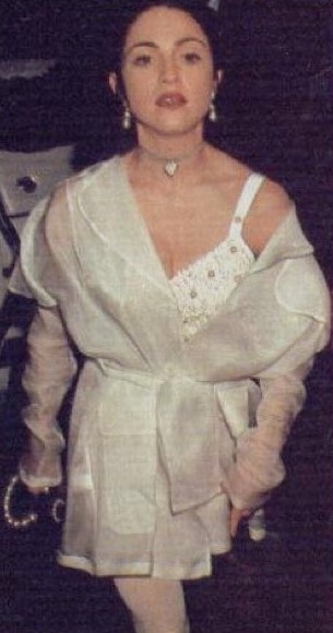 Madonna asisitó vestida completamente de blanco con un corpiño Dolce & Gabbana bordado con piedras y perlas, una calza y un tapado de gasa semitransparente. También usó un bolso negro con manijas de perlas de Chanel, el mismo que había mostrado en el cumpleaños de Naomi Campbell semanas antes.