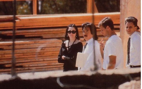 A partir de mayo, Madonna se tiñó el cabello de oscuro, estilo que mantendría hasta finales de año. Abajo, la vemos controlando la obra de su nueva mansión adquirida en Los Angeles, en junio de 1991.