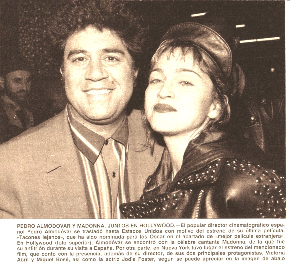Abajo junto a Pedro Almodóvar durante el estreno del film «Tacones Lejanos» en Hollywood.