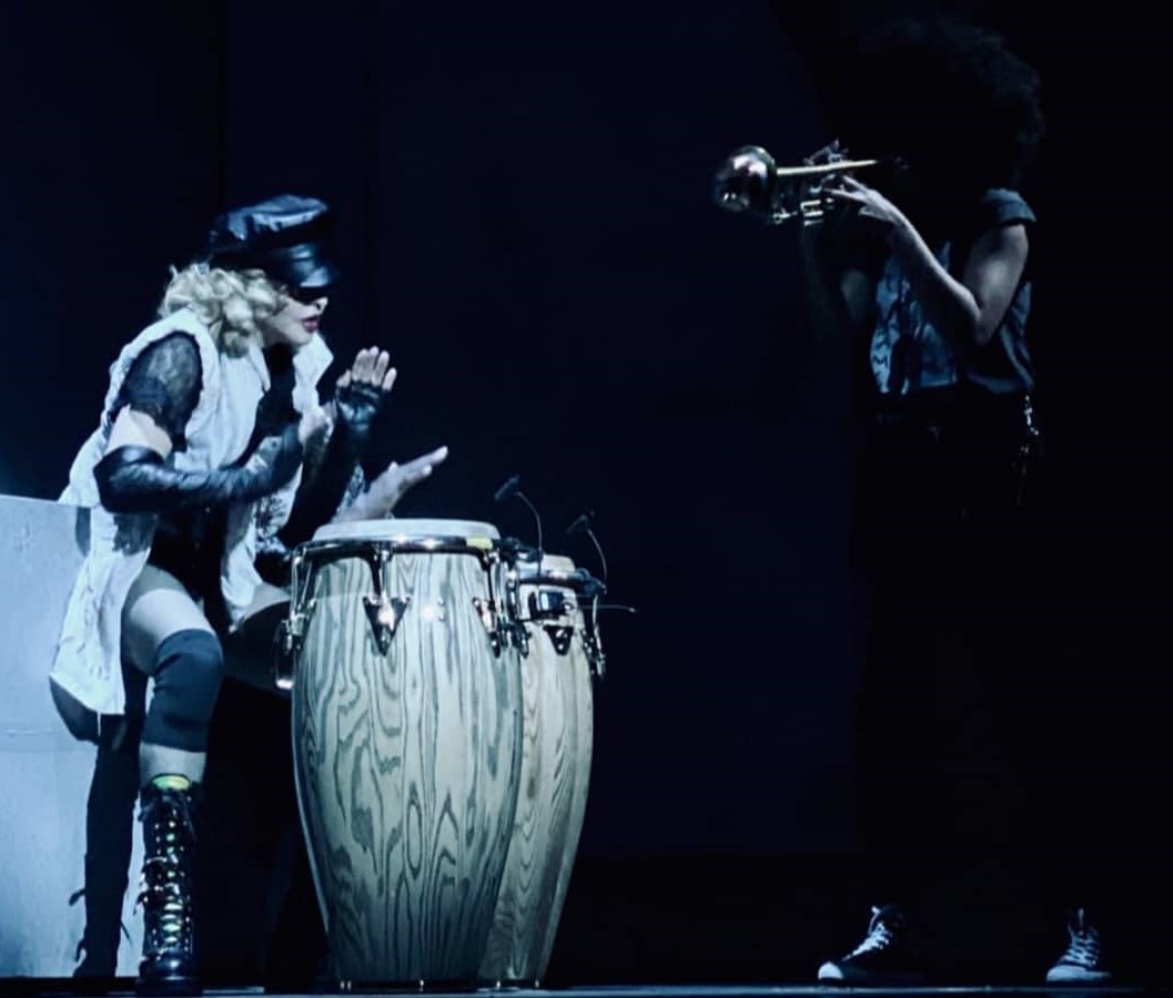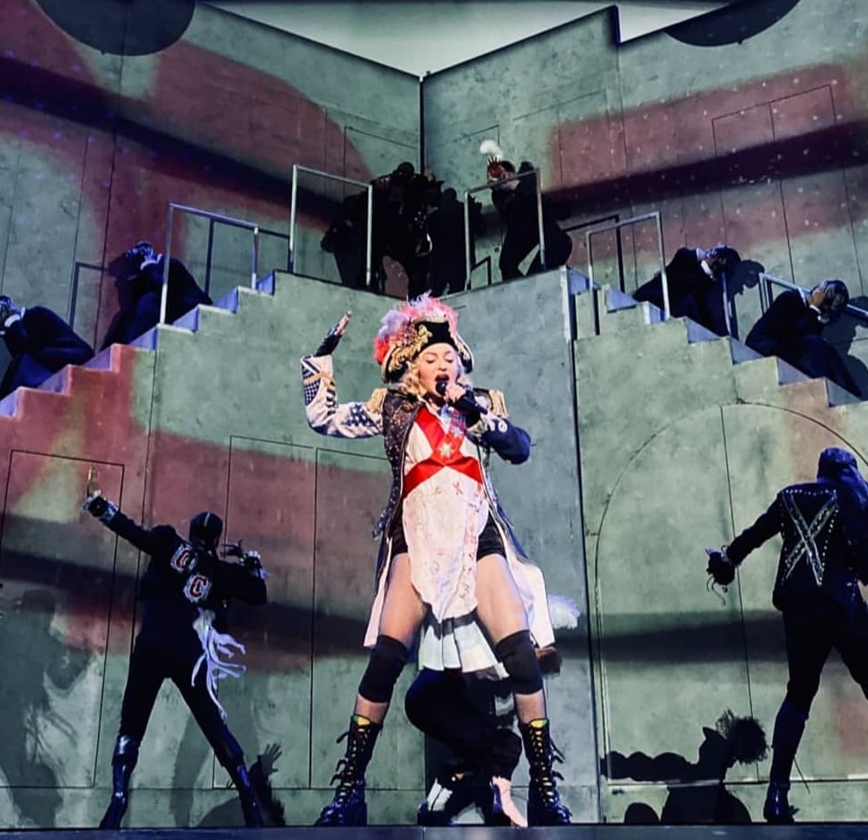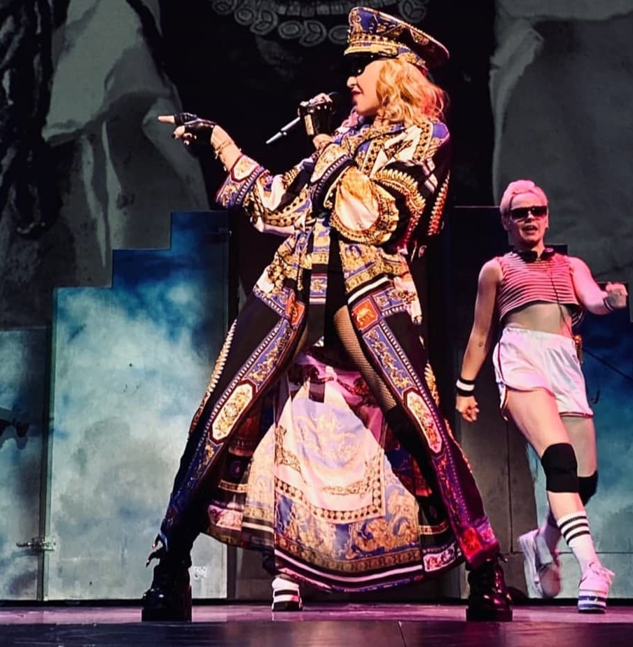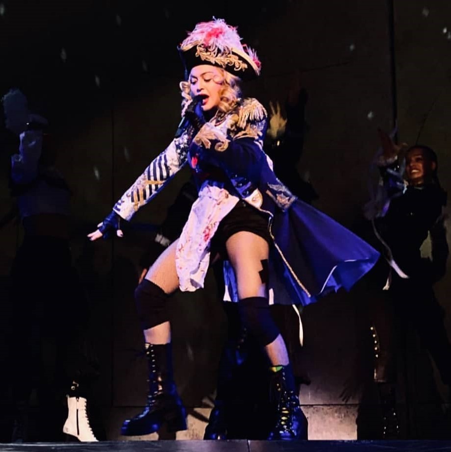- Durante los shows en Filadelfia, Madonna se quejó un poco del frío de la sala y pidió algunos tapados para usar durante el espectáculo, así que pudimos ver algunos cambios de looks como un gran tapado de piel que usó durante el momento de la selfie o saco de estilo militar que usó durante la sección «fado».