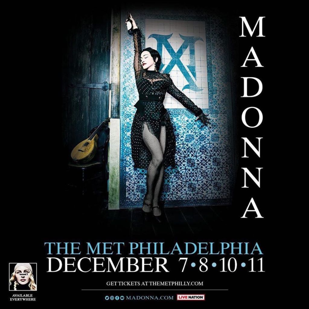 - Los shows de Filadelfia no se vieron afectados por las lesiones en las rodillas de Madonna como lo fueron los shows de Boston que se cancelaron en su totalidad. Después de unos días de descanso y recuperación en su casa de The Hamptons y en New York, Madonna estuvo lista para retomar los escenarios. El viaje a Filadelfia lo hizo en helicóptero, acompañada de su novio el bailarín Ahmalik Williams. Madonna llegó a Filadelfia de muy buen humor y el primer día se dedicó a ver los ensayos y realizar ajustes en cuestiones de sonidos y escenario en «The Met». El teatro contó con una marquesina especial y, como en todos los demás lugares, el paquete VIP contó con un salón especial y un buffet exclusivo previo al show, además del regalo del tourbook VIP.