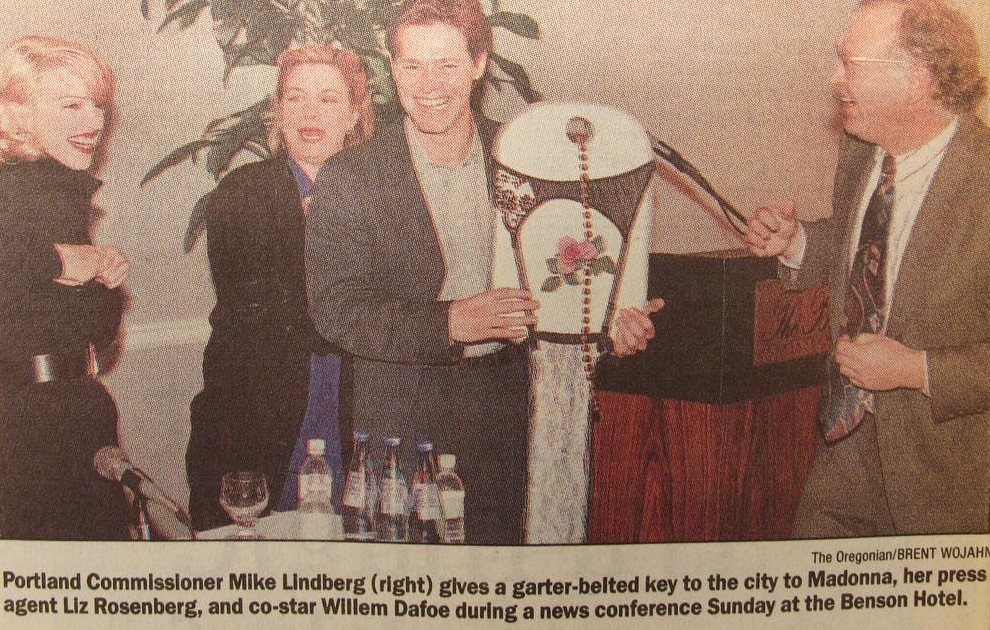 El domingo 05 de abril de 1992, Madonna se unió al director Uli Edel y al actor Willem Dafoe para realizar una conferencia de prensa sobre el inicio de filmación de la película «Body of Evidence». El film se comenzó a publicitar como un thriller erótico conjuntamente con la noticia de la realización del libro «Sex» de Madonna. La conferencia de prensa se llevó a cabo en el «Benson Hotel» de la ciudad de Portland, Oregon, donde se realizaría la primera parte de la filmación. Madonna habló sobre su trabajo como actriz y sobre el proyecto en cuestión; sobre su personaje, las críticas. Al finalizar el acto, el alcalde de la ciudad Mike Lindberg, entrega a Madonna las «llaves de la ciudad» que para esta ocasión estaba adornada con una media de encaje y portaligas para estar más «a tono» con la película.