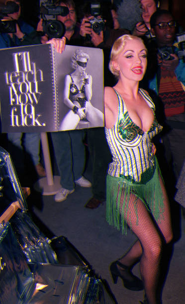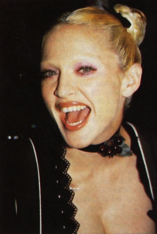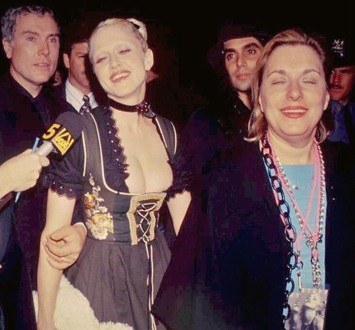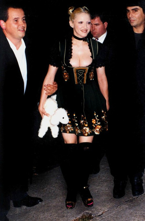 Madonna apareció recién pasadas las 22 hrs y asistió acompañada de Steve Meisel y el editor Glenn Obrian. Lucía un vestido negro típico estilo alemán con un impresionante escote, que dicen fue regalo de una mujer de alto rango de una compañía disquera por su paso en Alemania; zapatos de taco alto y medias negras hasta las rodillas, el cabello recogido en dos rodetes bien ajustados y suave maquillaje, completaba el look un corderito de peluche. Curiosamente, en esta ocación la funda de oro de su diente, típica marca de su persojane Dita estaba ausente. Madonna se mostró de buen humor y ante los cientos de fotógrafos, periodistas y paparazzis, sólo se limitó a gritar «¡Voten por Clinton!». Se retiró del lugar pasada la medianoche.